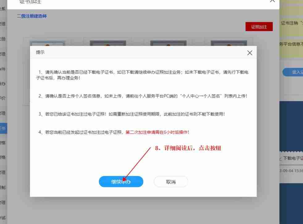 注:證照加注需要耐心等待一會,且短時間內(nèi)不建議進行二次加注證照。請在操作前注意看系統(tǒng)頁面的提示!