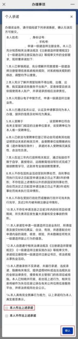 第五步:點(diǎn)擊“查看承諾書”(圖9-2),條款(圖10)勾選“本人作出上述承諾”,點(diǎn)擊“確認(rèn)”;